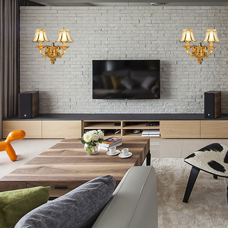 Brass Metal Wall Sconce Light Fixture For Living Room - Traditional Scalloped Design Half-Bulb Ideal