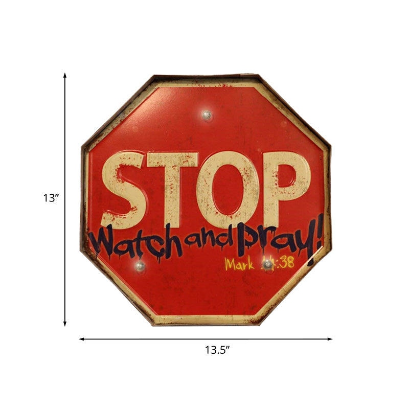 This Vintage Style LED Wall Sconce Light Red Warning Signboard Night Lamp brings modernity and an elegant look to any room or space. It is made of durable metal with a smooth red finish and features an ornate frame around an illuminated LED. It comes with a Size of 10 to 14 inches, a Bulb Base of SMD, Bulb Included Yes, Fixture Width of 12" 13.5", Length of 12" 13", Color Temperature Warm, Feature Itty Bitty, Light Type LED and Fixture Height of 10 to 14 Inch. This beautiful wall light also features a unique Style of Kids, Material Metal, Power Source Battery and Shape B A.
