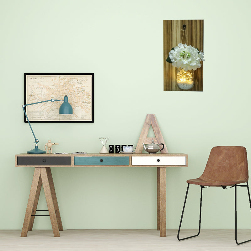 Nordic Glass Jar Flower Wall String Light with Wood Backplate, White Twinkle Light