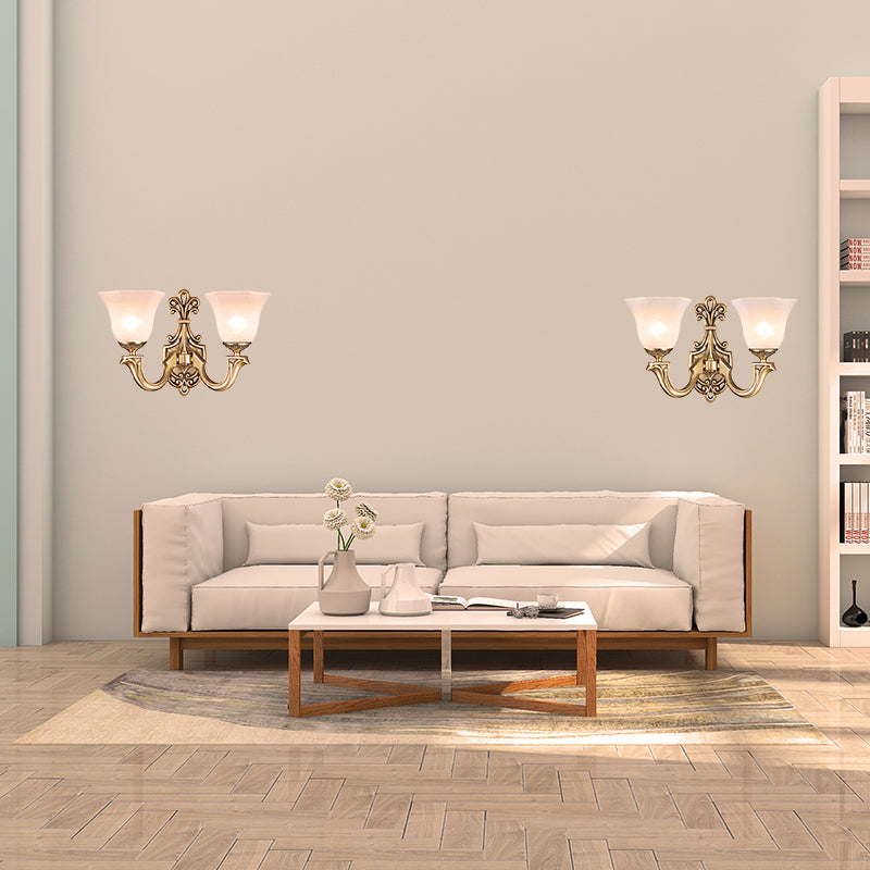 Traditional Opal Glass Trumpet Sconce Lamp With Brass Curved Arm - Wall Lighting Fixture 2 /