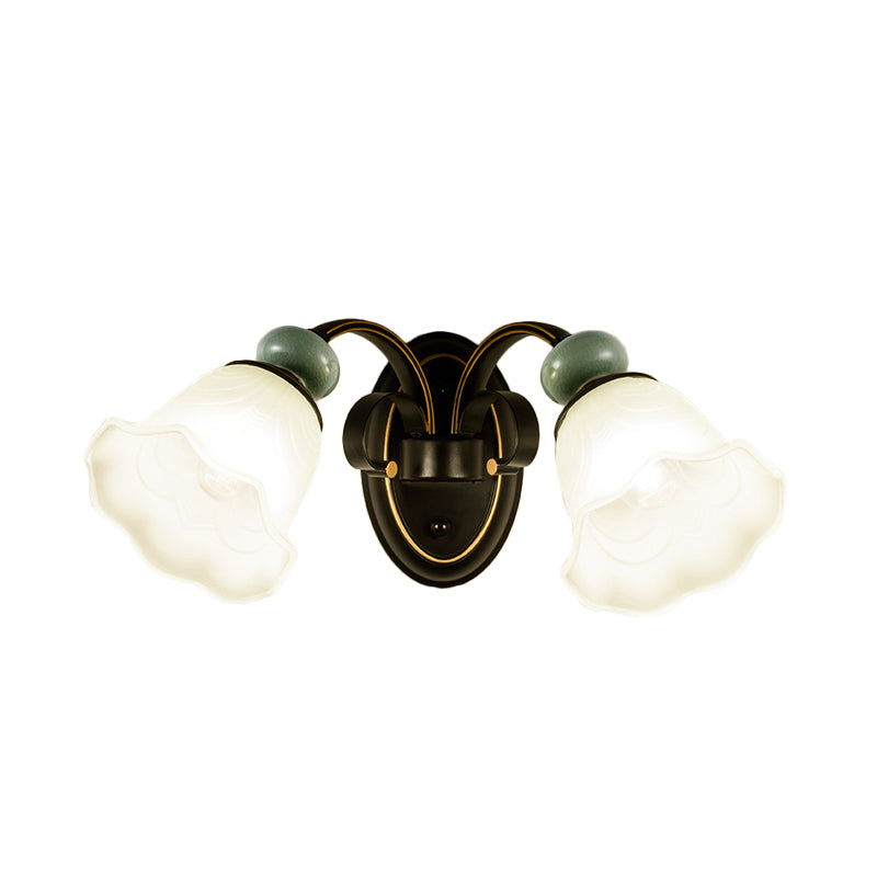 Vintage-inspired Black Wall Mounted Light with Frosted Flower Glass - Retro Style Lighting Solution
