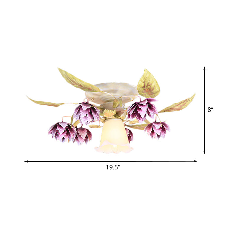 Pastoral White Metal Flower Semi Flush Mount Ceiling Light with Flared 1/4 Bulbs for Dining Room