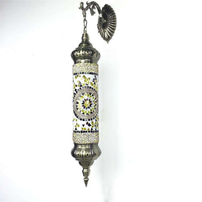 This is a beautiful wall lamp that will add a touch of class to any room. The lamp has a traditional style and is made of glass. It comes in a range of colors, including red, yellow, and blue, and the light can be set to either 110V-120V or 220V-240V. The lamp is 25 inches tall or higher and has a width of 11 inches.