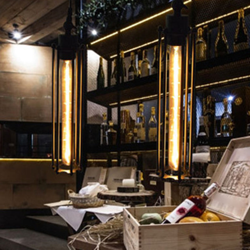Industrial Black Iron Cage Pendant Light - 1-Bulb Cylindrical Ceiling Fixture for Bars