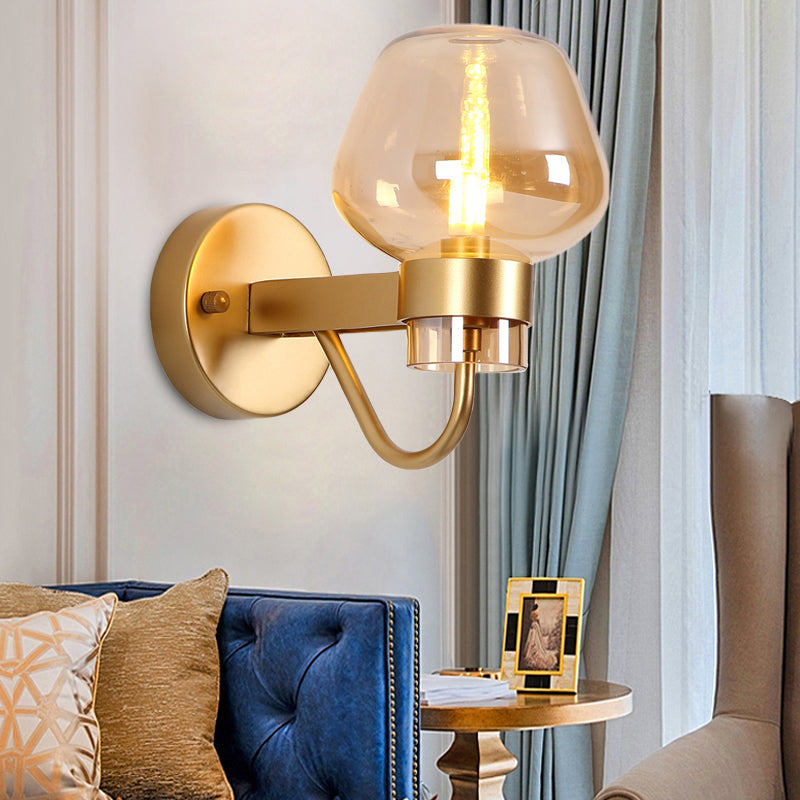 1 Bulb Jar Sconce Lamp - Clear/Amber/Smoke Gray Glass Wall Lighting For Bedside Amber