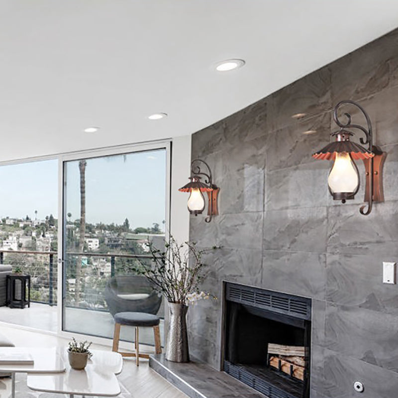 Coastal Crackle Glass Lantern Wall Light with Clear Bulb Fixture