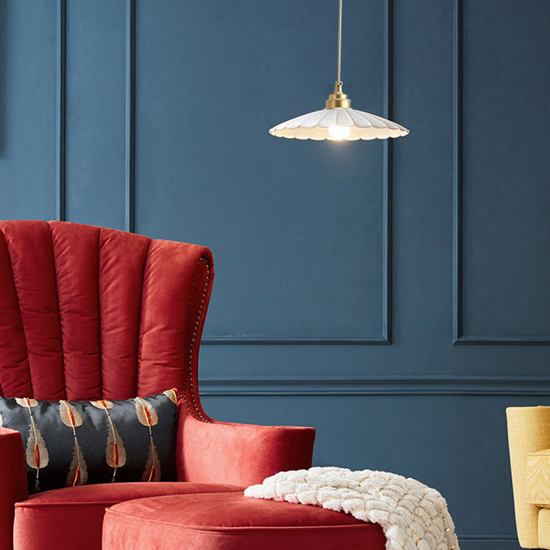 Industrial Flared Black/White Pendant Light - Hanging Ceiling Lamp Fixture White