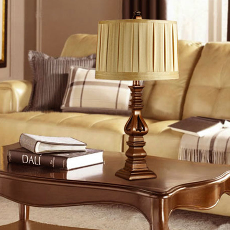 Rustic Red Brown Pleated Fabric Table Lamp: 1 Head Drum Shade, Nightstand Light for Living Room