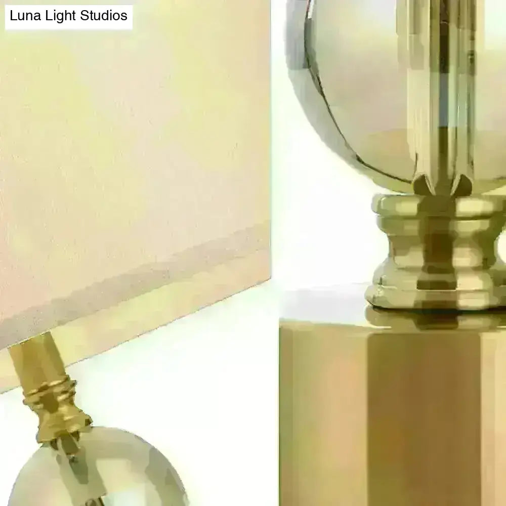 Zaniah - 1-Head 1 Head Night Lamp Classic Bedroom Crystal Nightstand Light With Round Fabric Shade