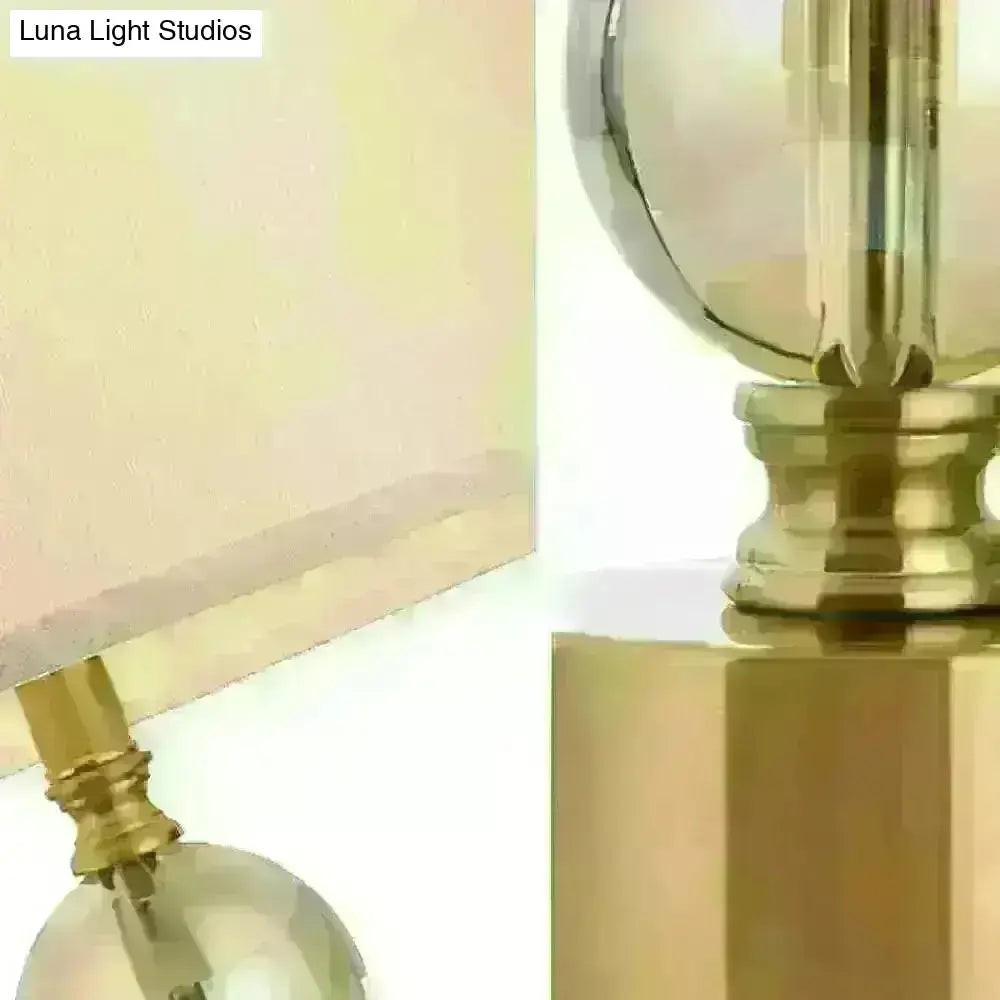 Zaniah - 1-Head 1 Head Night Lamp Classic Bedroom Crystal Nightstand Light with Round Fabric Shade in Brass