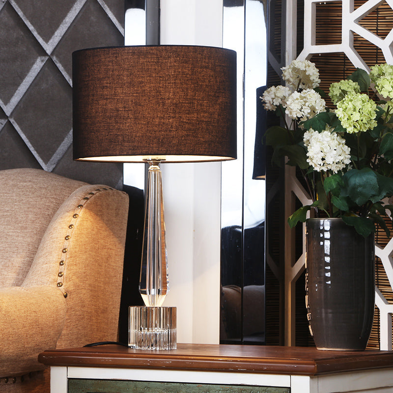 Traditional Clear Crystal Table Lamp - Shaded Night Light For Living Room Flaxen/White/Black Black