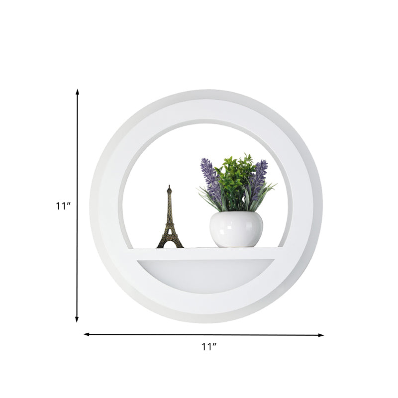 Industrial White Metal LED Circle Sconce Lamp - Bedroom Wall Light