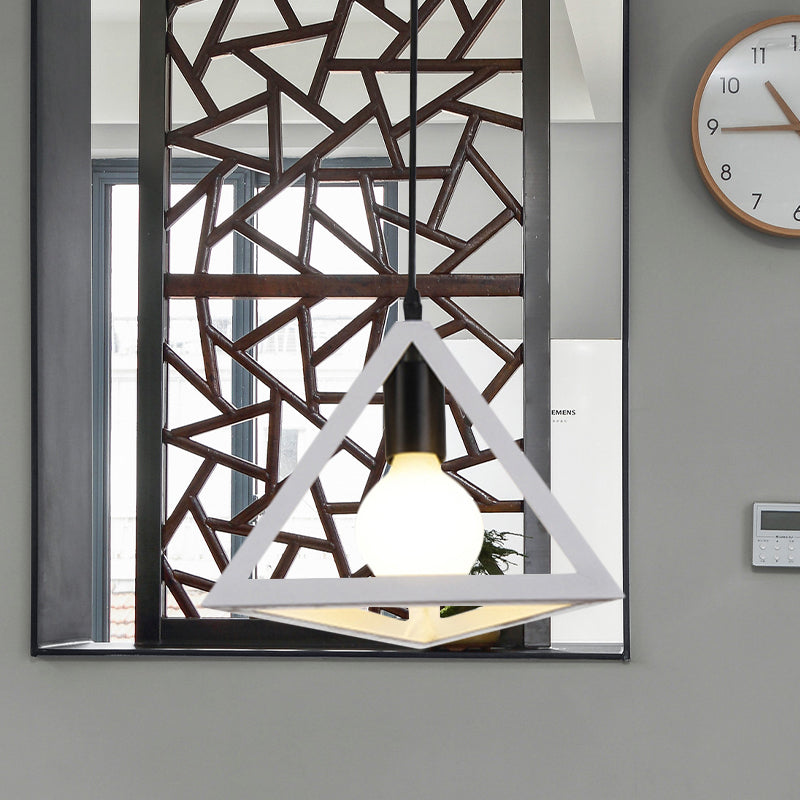 Retro Stylish Metal Hanging Lamp With Colorful Triangle Cage Shade Pendant Lighting For Living Room