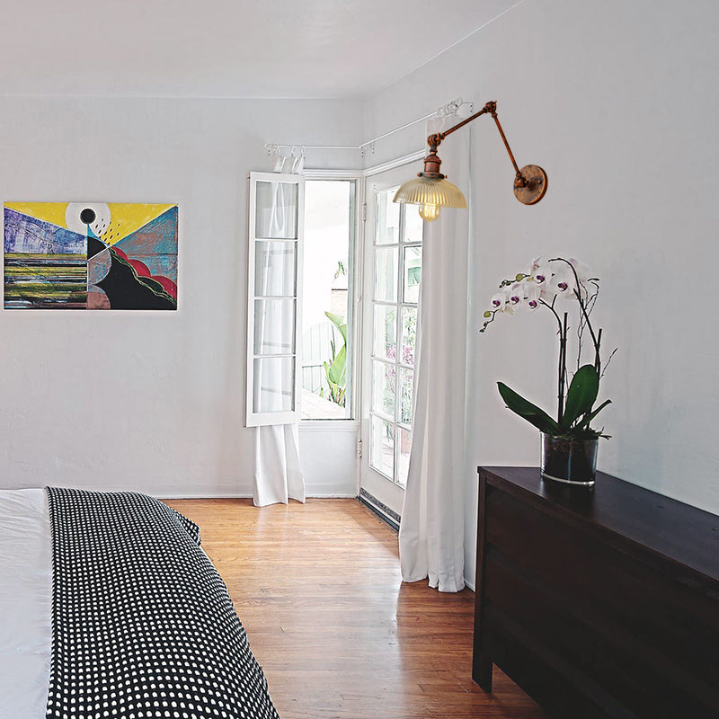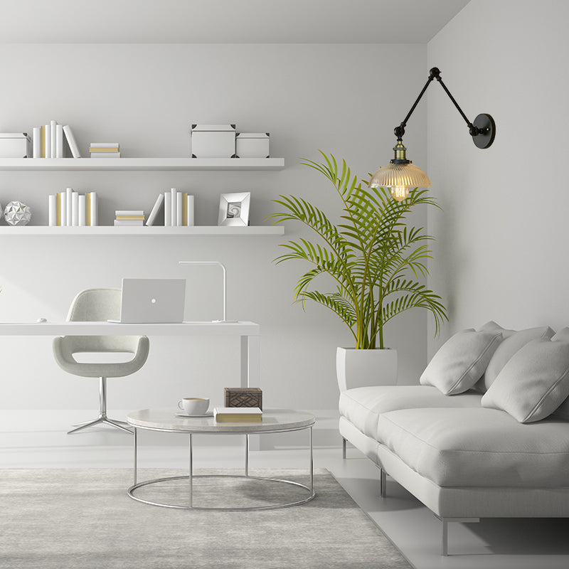 This chic wall sconce light is sure to bring a modern industrial touch to any living space. The fixture features an impressive ribbed glass diffuser, with a domed-shaped shade showcasing three stunning finishes - antique brass, black, and rust. The arm can be adjusted to point in either direction, making it ideal for houses with hallway corridors or tight spaces.