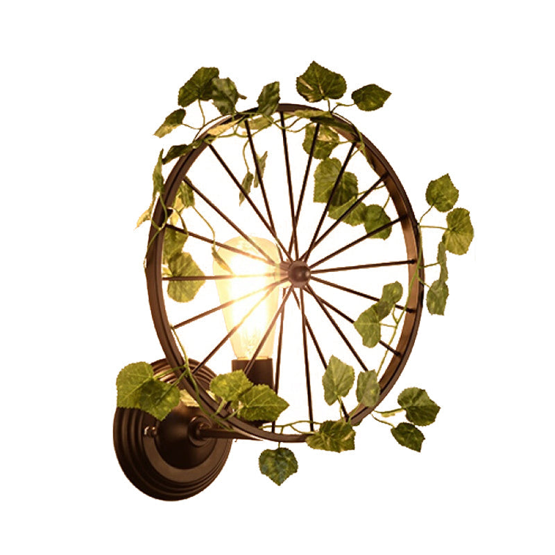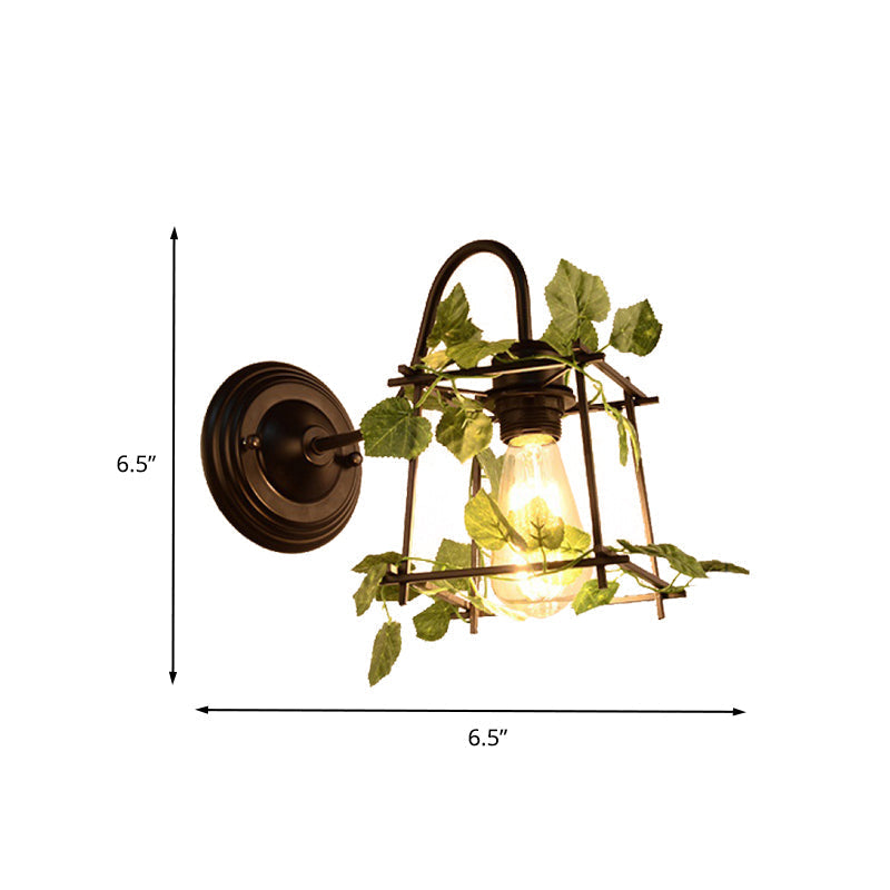 Industrial Diamond/Globe/Square Metal LED Wall Lamp Sconce in Black with Plant - 1 Light Fixture