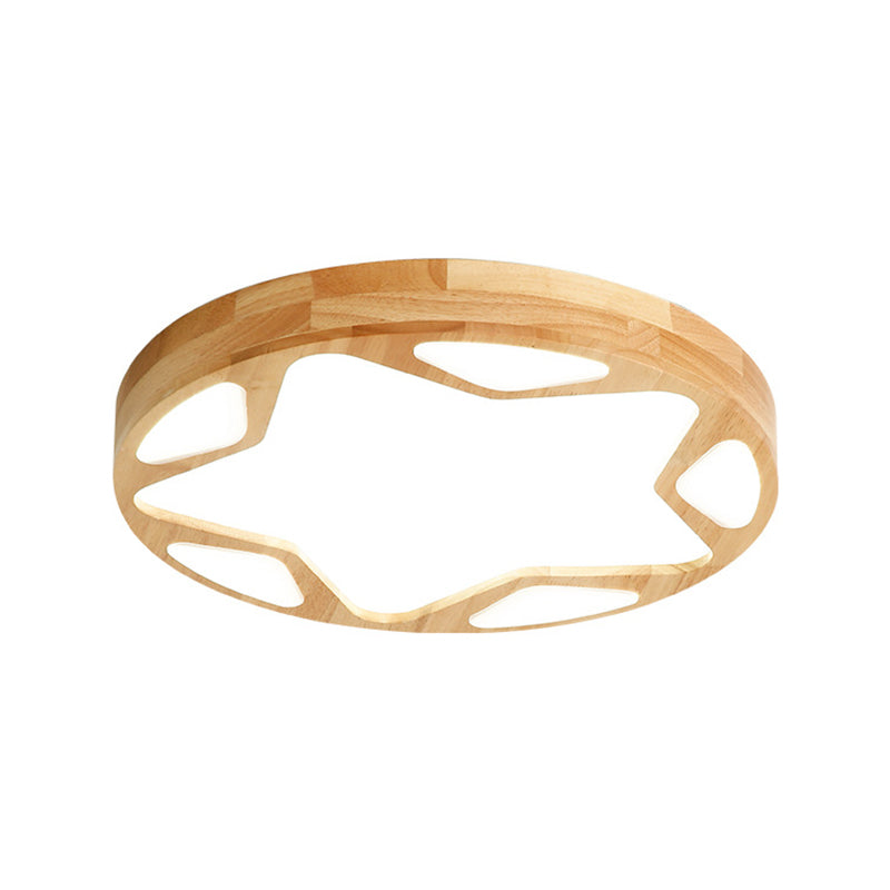 16/19.5 Minimalist Wood Led Ceiling Light With Star Design In Warm/White/Natural - Beige Flush Lamp