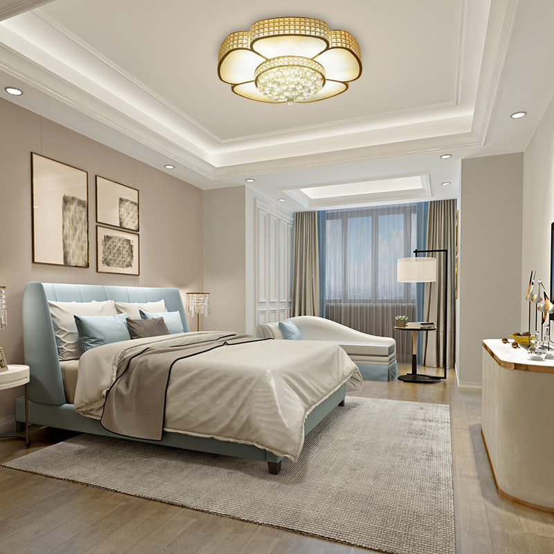 Modern Crystal Flower Ceiling Lamp - 16/23.5 W Flush Light In Gold