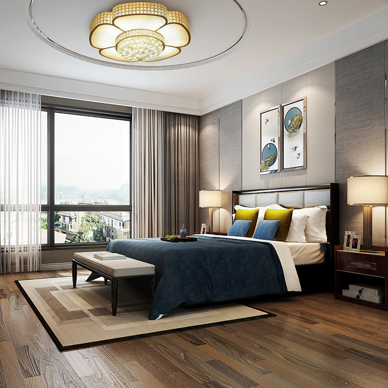 Modern Crystal Flower Ceiling Lamp - 16’/23.5’ W Flush Light In Gold