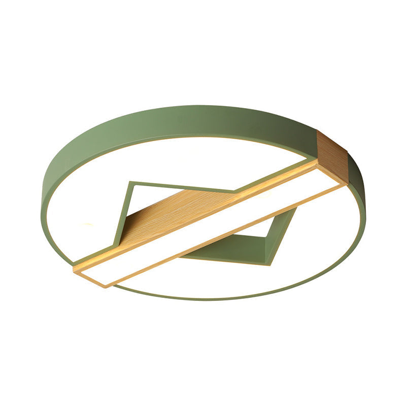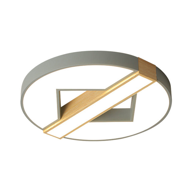 LED Macaron Green/Grey-Wood Bedroom Ceiling Light - 16.5"/20.5" Flushmount with Round Acrylic Shade, Warm/White Light