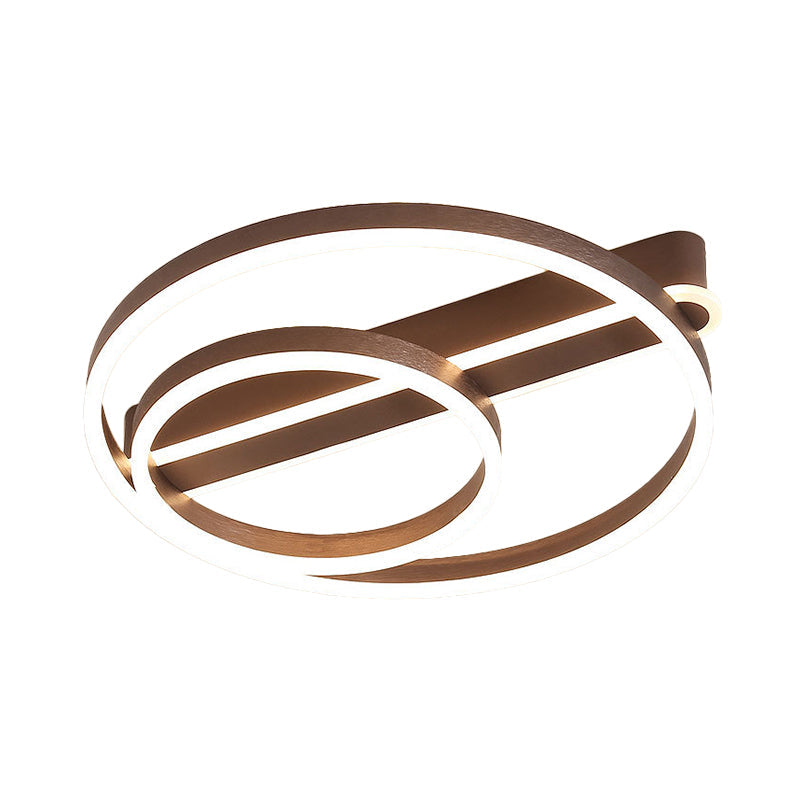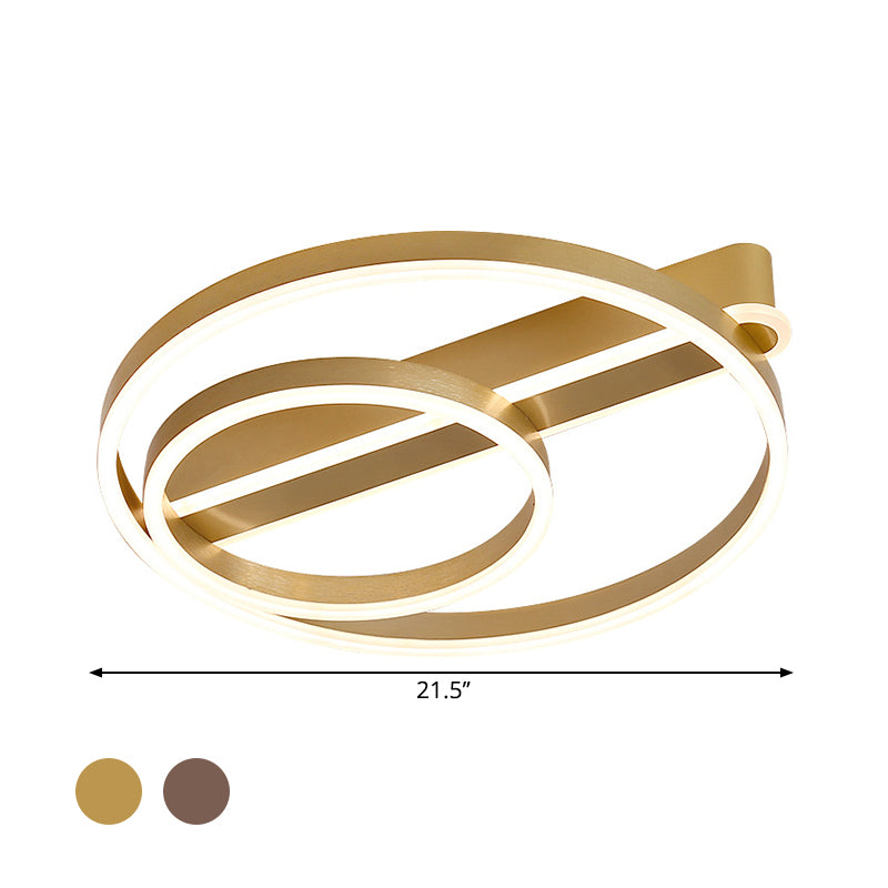 Modern Metal Gold/Coffee Flush Mount Light - 18/21.5 W 2-Hoop Led Ceiling Lamp Parlor Warm/White