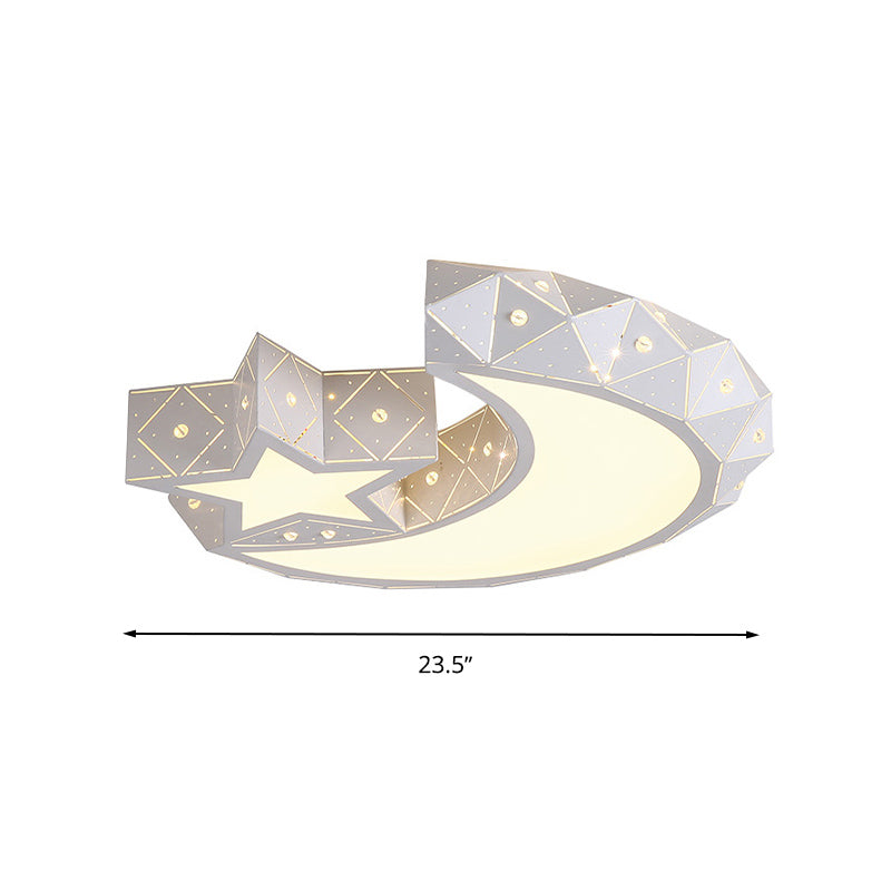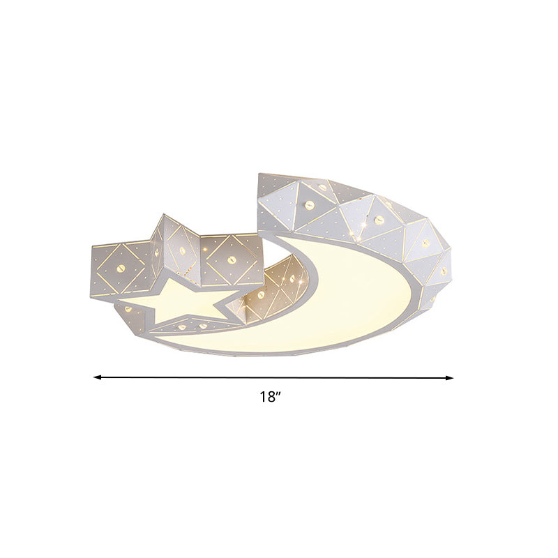 18/23.5 Wide Stars Moon Flush Mount Light Modern Acrylic Led White Ceiling In White/3 Color / 18 3