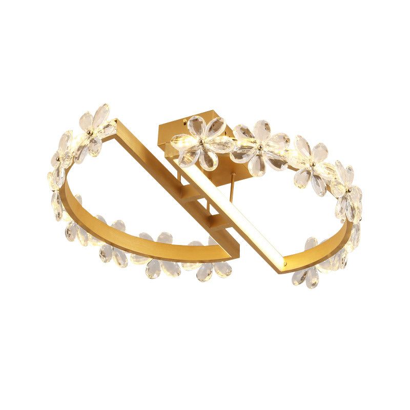 19.5/29 Petal Crystal Led Ceiling Mounted Fixture - Gold Flush Mount Lighting In Warm/White/3 Color