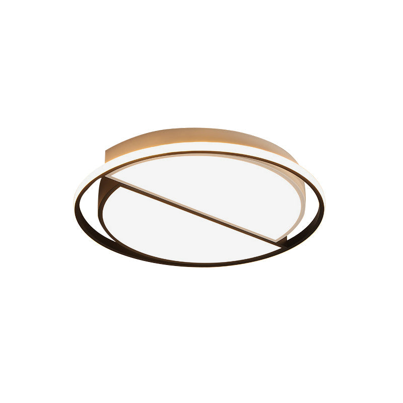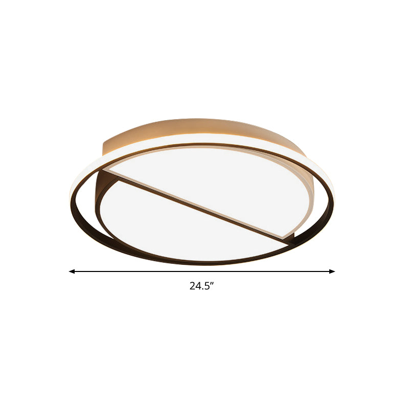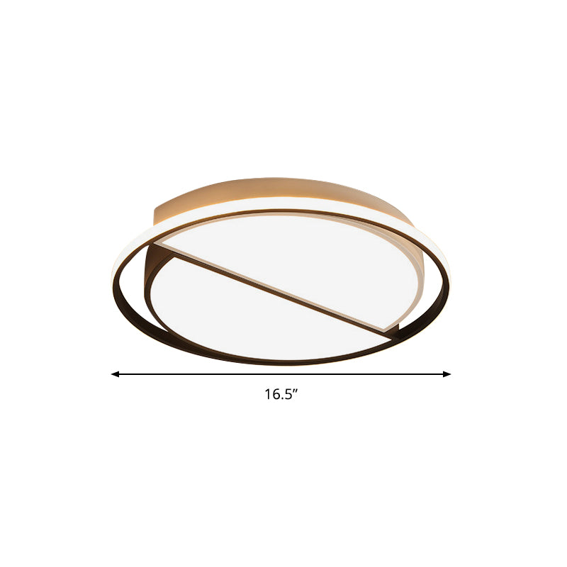 This is a 2 Semicircular Flush Mount Lamp in the Contemporary Metal style. It is available in black/black and white. The LED light is ceiling mounted and the fixture is 16.5"/20.5"/24.5" wide. The light type is LED and the bulb base is SMD. The color temperature is white warm and the voltage is 110V-120V.