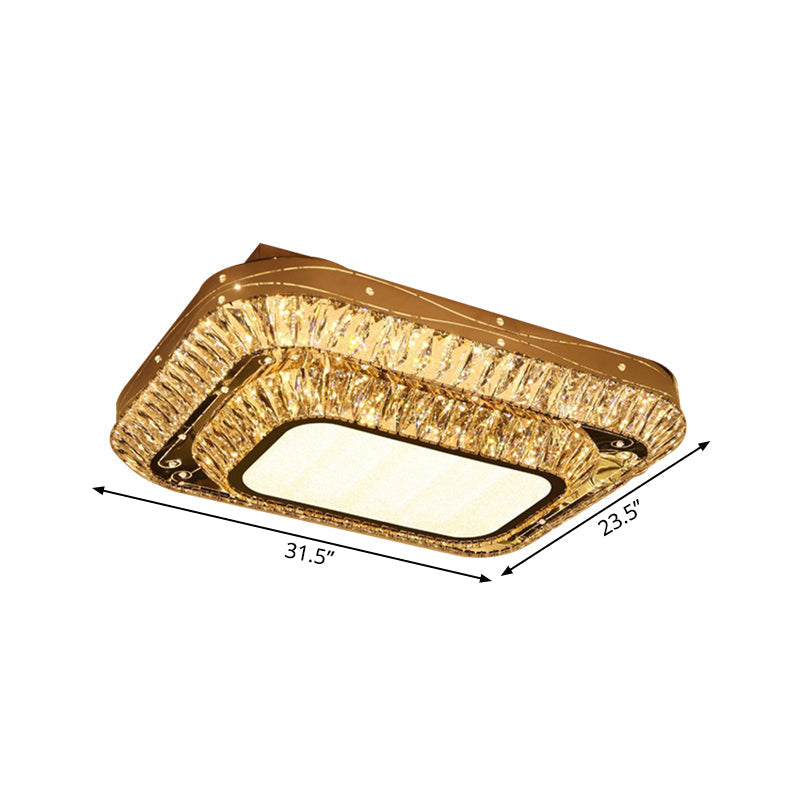 This product is an incredible 2 Tiers Rectangle Crystal Ceiling Flush Modernist Sitting Room LED Flushmount Light. It is in an elegant Chrome color and is perfect to add a touch of modern style to any room. Featuring a sleek and modern design, this light is made with metal and has a stunning look. It includes a bulb and is rated for 220V-240V 110V-120V. With a length of 31.5", a fixture width of 23.5", a fixture height of 5" and a size of 25" or more, this light is sure to light up your room and add a touch of elegance to any décor. Featuring a SMD bulb base and an LED light type, this light provides a bright and vibrant lighting experience. This modern, sleek piece is perfect to light up any room and it is sure to be a gorgeous addition to your home's décor.