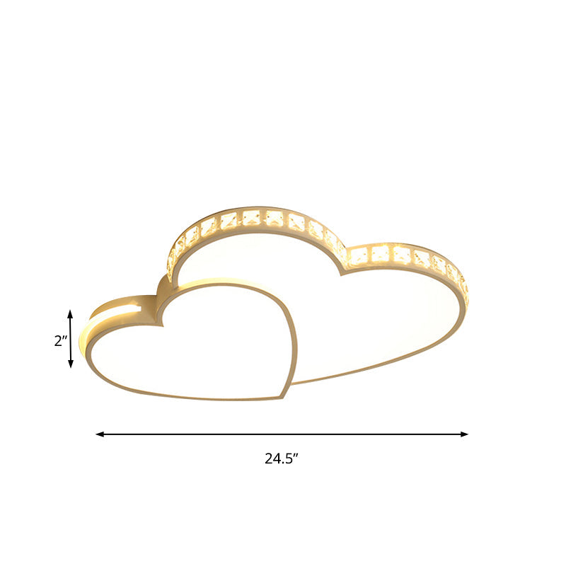 20.5/24.5 Double Heart Flush Mount Crystal Led Ceiling Light Fixture - Warm/White For Bedroom White