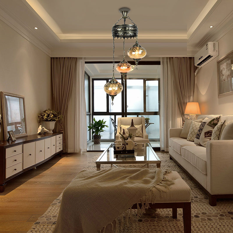 Amber Swirl Glass Pendant Light - Traditional Bronze Oval Chandelier for Living Room