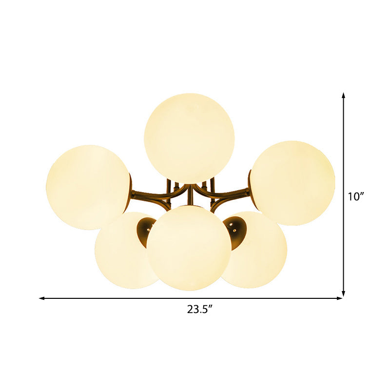 Traditional Black Semi Flush Ceiling Light Fixture with Globe White Glass Shade - 3/6 Lights for Living Room