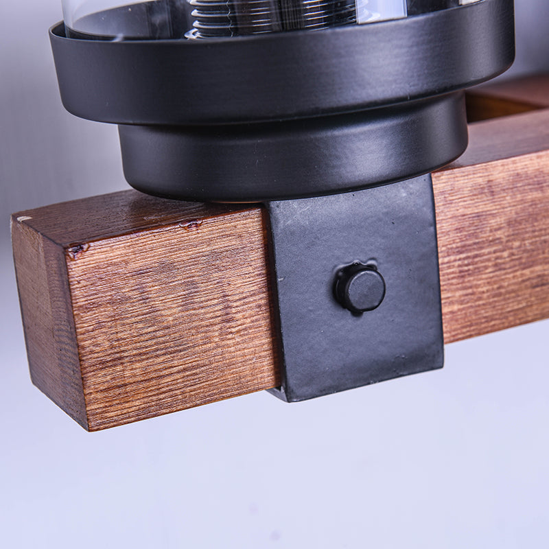 Cylinder Shade Clear Glass Wall Sconce: 3-Bulb Brown Fixture for Traditional Living Rooms