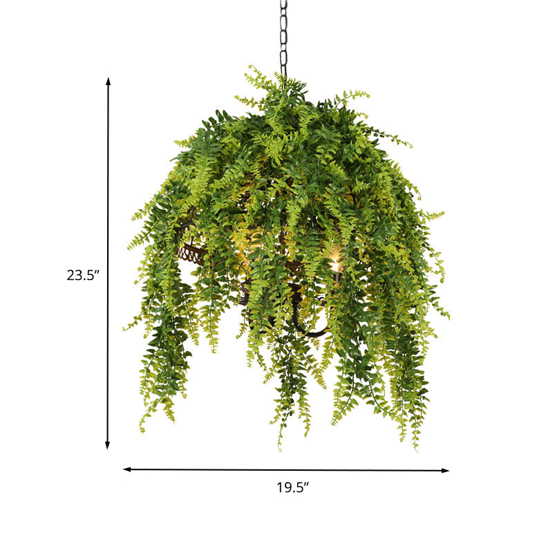 This product is a 3-bulb metal chandelier in the retro green plant style. It is perfect for restaurants or any other ceiling lighting needs. The light is LED, making it very energy-efficient. The chandelier measures 19.5 inches wide and 23.5 inches tall. It has a voltage of 220V-240V 110V-120V and takes bulb base E26/E27.