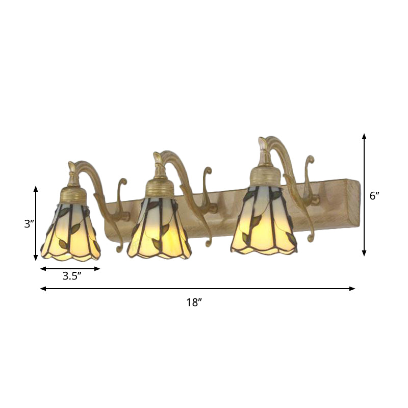 Rustic Loft Stained Glass Vanity Light With Linear Backplate And 3 Leaf-Shaped Heads In