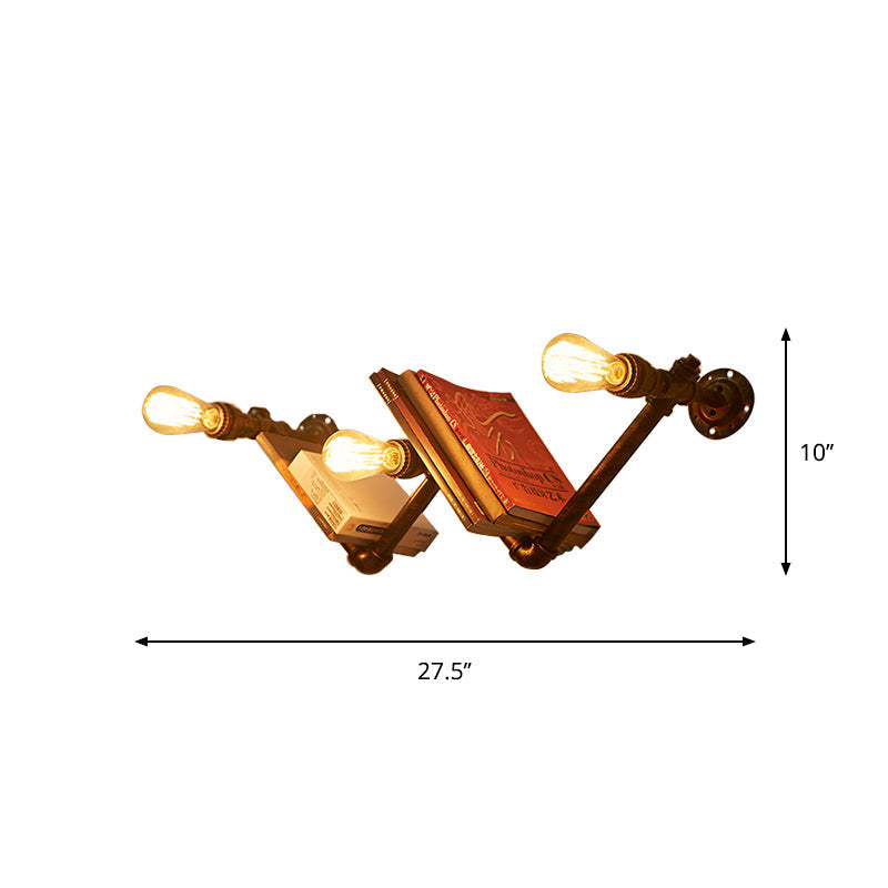 Industrial Dark Rust Metal Wall Sconce Light Fixture with W-Shaped Design & 3 Lights