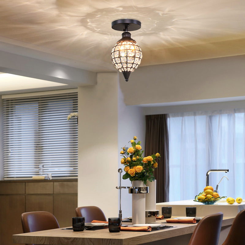 Rustic Iron Semi Flush Mini Disco Ball Ceiling Light with Crystal Draping - 5"/6.5" W, 1-Light