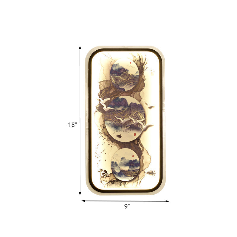 Contemporary Asian LED Wall Lamp Kit: Abstract Painting Mural Light Sconce in Black