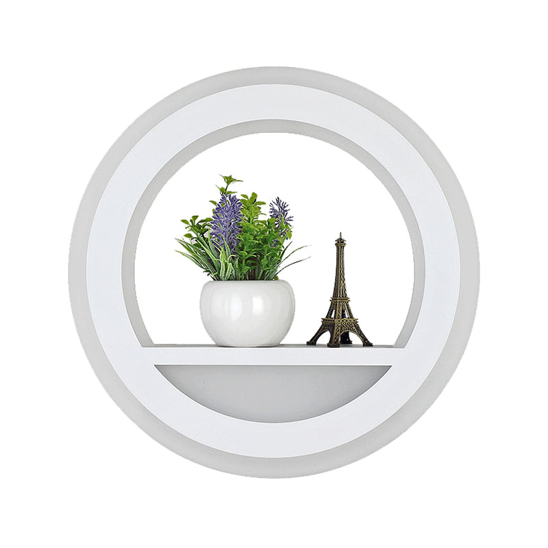 Nordic White LED Acrylic Halo Ring Wall Sconce Light Fixture with Shelf Design