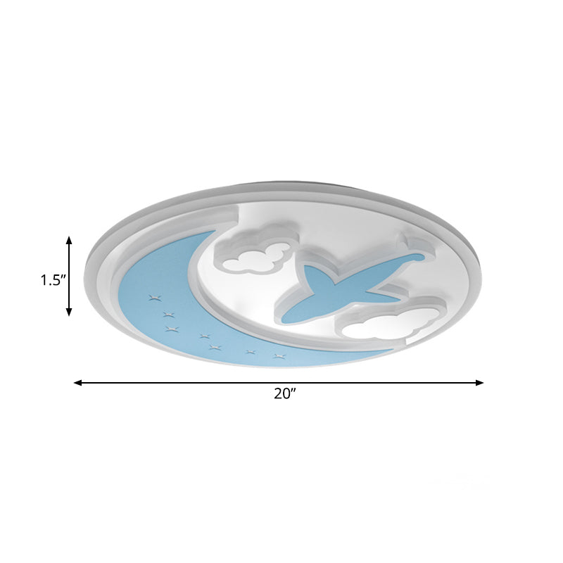 Blue and White LED Moon Ceiling Light with Carved Plane & Cloud Design
