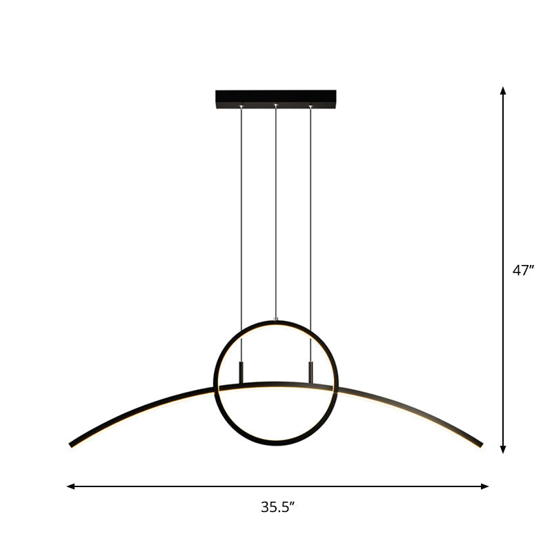 Modern Black Aluminum Arch Chandelier: LED Island Lamp with Ringed Design