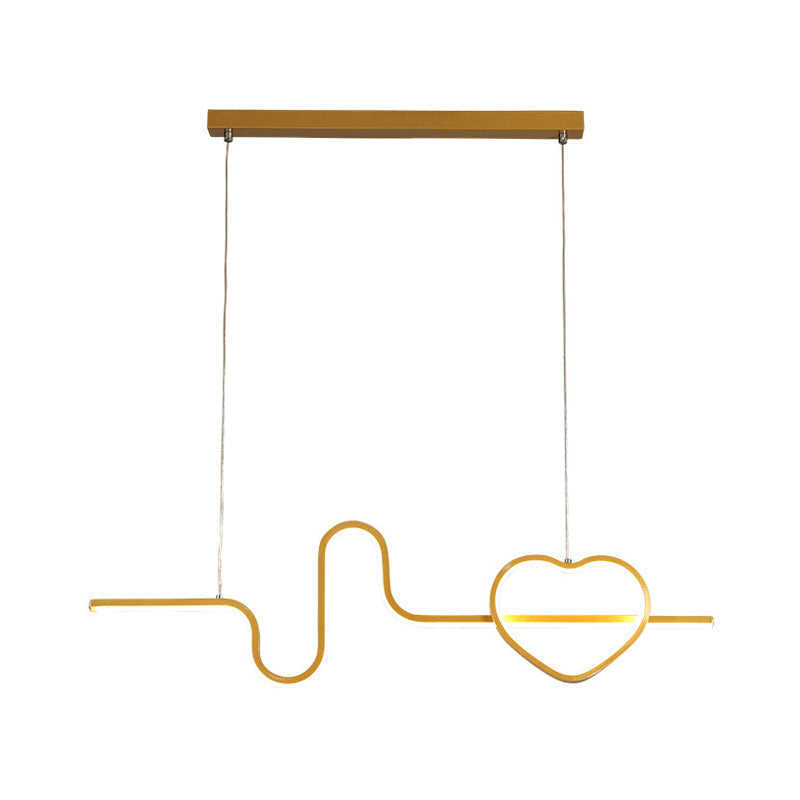 Heart And Line Island Metal Pendant Light - Artistic Led Ceiling Fixture For Dining Room Gold /