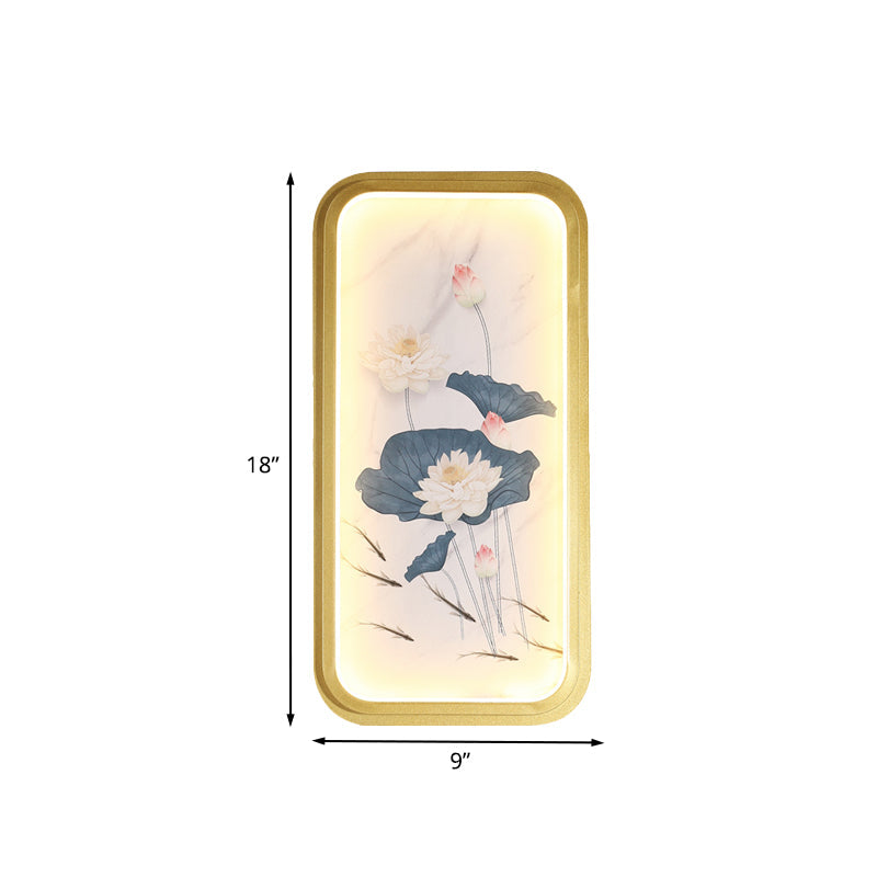 Gold Lotus Fabric Wall Sconce with LED Flush Mount for Bedroom