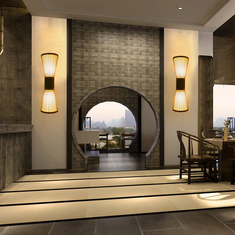 Bamboo Hourglass Sconce Light - Modern Wall Lighting Fixture with 2 Bulbs in Bronze for Living Room