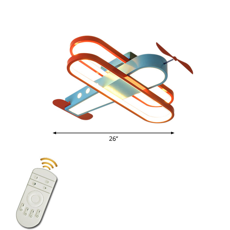 Cartoon Biplane Led Ceiling Flush Light For Boys Room - Acrylic Flush-Mount Fixture Blue / 26.5 Warm