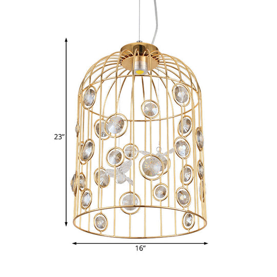 This elegant Bird Cage Suspension Pendant Modern Metal 4-Bulbs Hanging Ceiling Light is an ideal choice for your dining room. It has an exquisite design, featuring a gold-colored metal bird cage construction that adds a touch of sophistication to your decor. The fixture width and height are 16 inches and 23 inches respectively, offering plenty of space and a stunning visual effect.