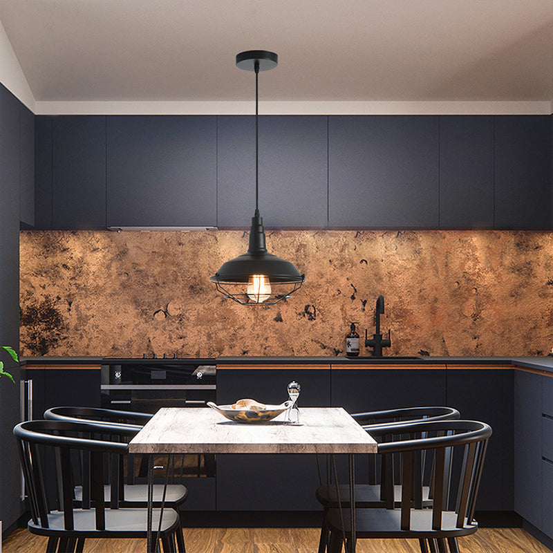 A tapered cage draped from the fixture keeps light from shining in an unwanted direction and shades the bulb of choice—whether that's an LED, incandescent, or fluorescent, they all accept the bulb base E26/E27. The featured indoor design works well in many residential and commercial settings and the given voltage of 220V-240V 110V-120V makes the product suitable for many country use. The fixture type can be With Shade and the style is Industrial.
