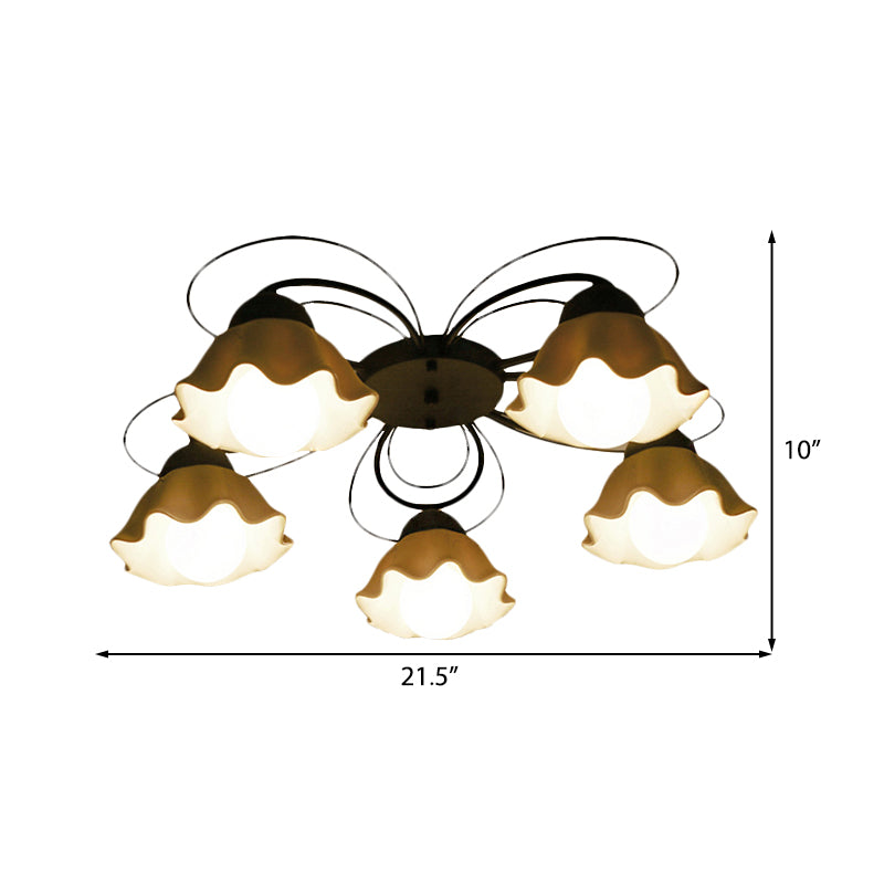 Traditional Black Ceiling Mount Light Fixture with Scalloped White Glass, Ideal for Bedroom (3/5/6 Lights)