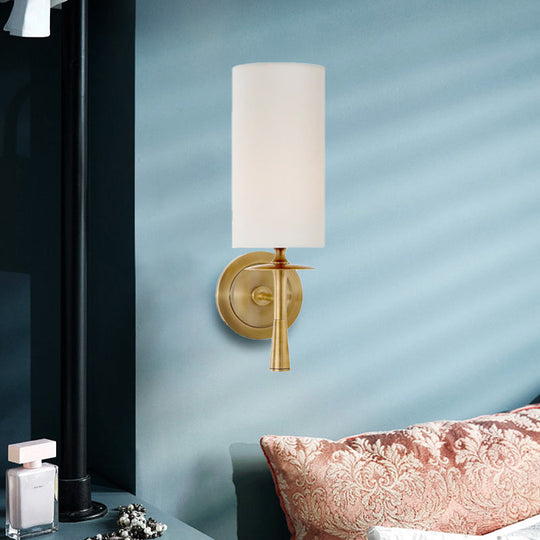 Black/Brass Wall Mount Sconce Light With Traditional Fabric Cylinder Shade For Living Room Brass