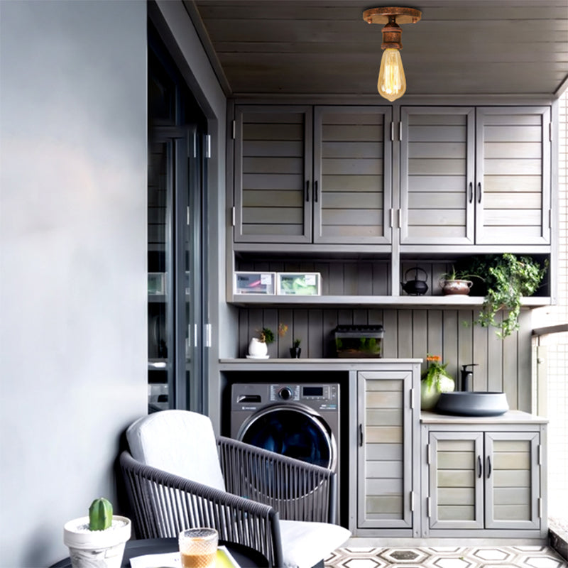Retro Industrial Metal Black/Brass Finish Ceiling Lighting - Exposed Bulb Semi Flush Mount Light for Balcony- 1 Light