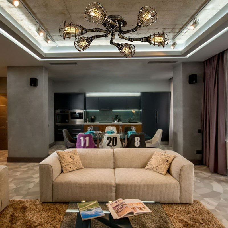 The overall style of the ceiling lamp is industrial, with a bronze or rust finish color that perfectly complements the black and beaten metal look. It can look great in both modern and traditional home decor, and will provide plenty of illumination with up to 8 bulbs that will light your interior space.